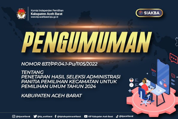 PENGUMUMAN TENTANG PENETAPAN HASIL SELEKSI ADMINISTRASI PANITIA PEMILIHAN KECAMATAN UNTUK PEMILIHAN UMUM TAHUN 2024